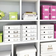 Eleganckie cieszące oko pojemniki na dokumenty z serii Leitz WOW. Sprawdzą się gdy dokumentów nie masz tak wiele i pozostawiasz je "na widoku"